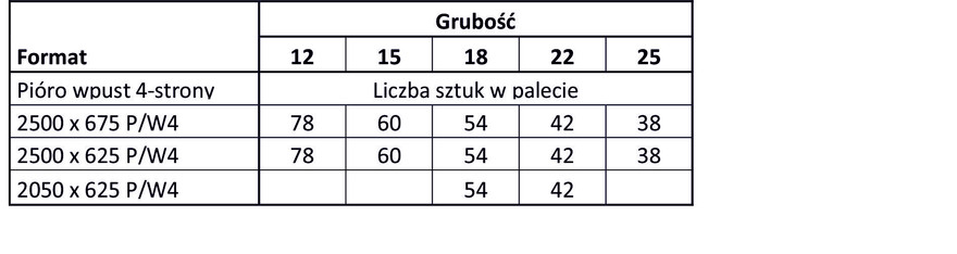 - płyta z krawędziami czterostronnie frezowanymi na pióro i wpust.